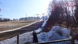 Rano stok (szczególnie w dolnej części trasy) wyśmienity (jak na tę zimę). Ładnie wyratrakowany i lekko zmrożony. Wszyscy narciarze na tej części trasy pokazywali czego nauczyli się tej zimy. I miło było popatrzeć jak ładnie składali się do skrętu wycinając krawędziami nart tor jazdy. Natomiast w górnej części trasy śnieg z upływem dnia znikał w oczach i coraz trudniej było znaleźć miejsce do przejazdu.