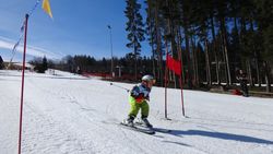Grupy młodsze z miłą chęcią korzystały z ustawionego przez organizatorów zabawy na śniegu slalomu. Ścigały się same między sobą rywalizując z koleżanką lub kolegą z grupy. Dzieci brały też udział w różnych zabawach i konkursach wygrywając nagrody i zbierając upominki.